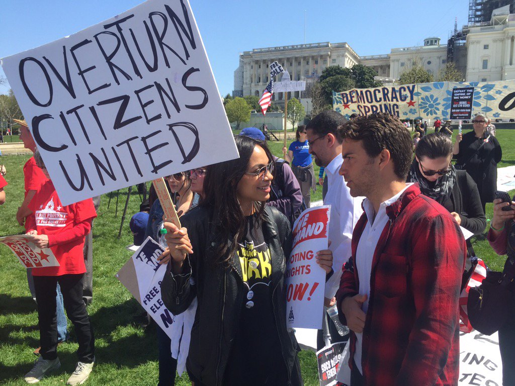 | @rosariodawson marching at #DemocracySpring with organizer @kai_newkirk |